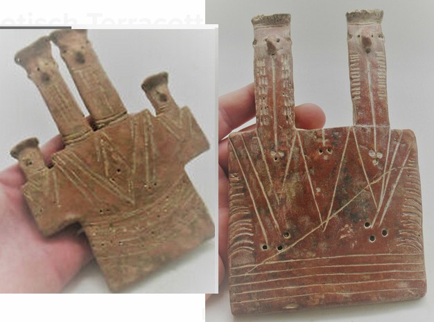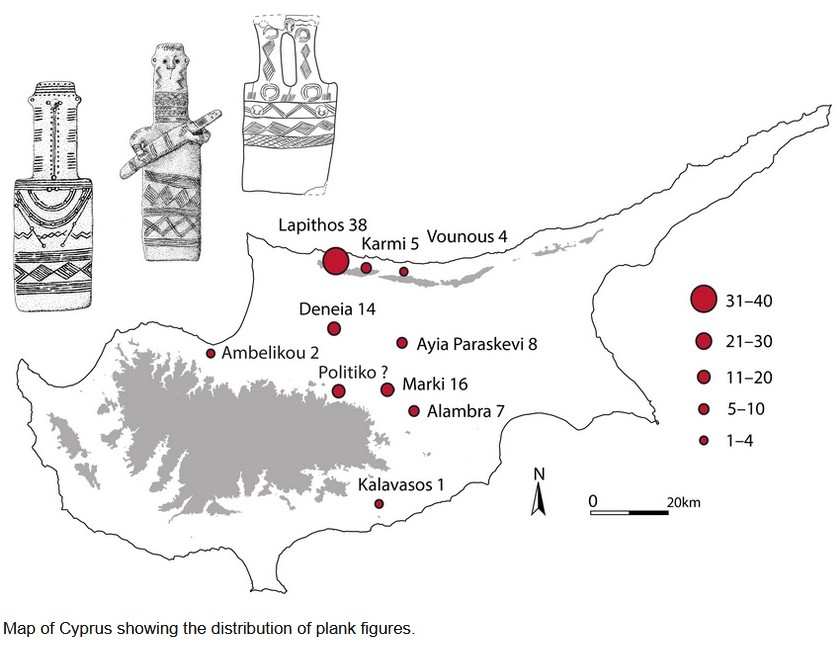 During the Early and Middle Bronze Age in Cyprus roughly from 2000 BC to 1600 BC so called plank-shaped statuettes made of terracotta were made.