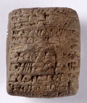 State employees were entitled to receive provisions in the course of their travels on the job, and provisions were supplied at the way stations or rest houses of the Ur III state road system. These "messenger texts" apparently served as vouchers for the receipt of food and drink at such rest houses (information courtesy Miguel Civil). At the end of each month the vouchers were collected and put in a sack, which was sealed with a clay tag inscribed with the total quantities of provisions dispensed, summed up on the basis of the vouchers; the sack of tablets was sent back to central administration at the provincial capital, where records were stored.