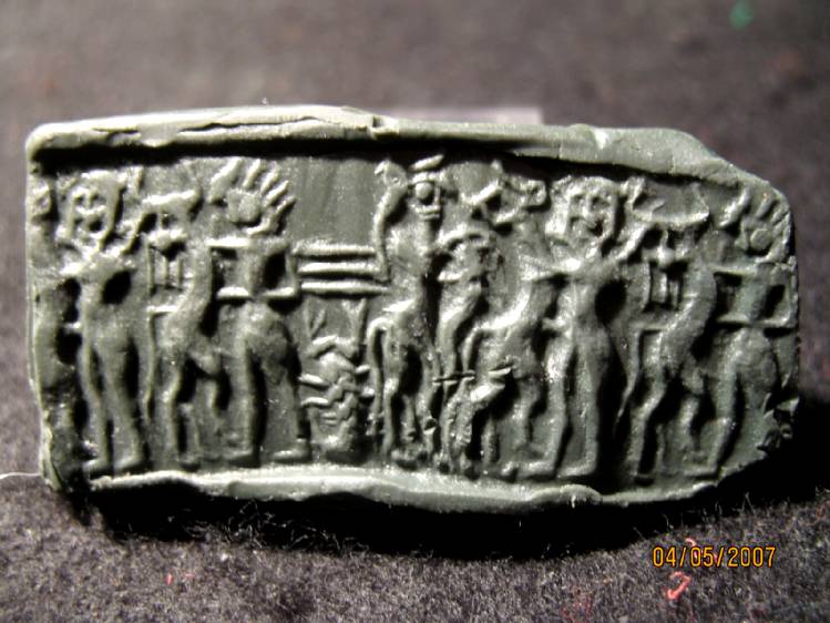 17.(N) A very fine Early Dynastic (ED II/III) seal in lapis with five figures.