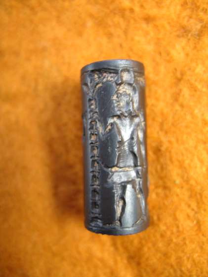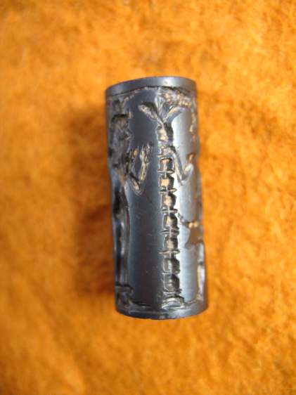 A very attractive imprint is made by this rare seal which comes from Mesoptotamia but outside of Babylonia. As you will read on the note from Professor Lambert it is possble that this is a rather earlier seal whch has been re-cut four and a half thousand years ago. 21mm x19 mm Circa 2300 BC