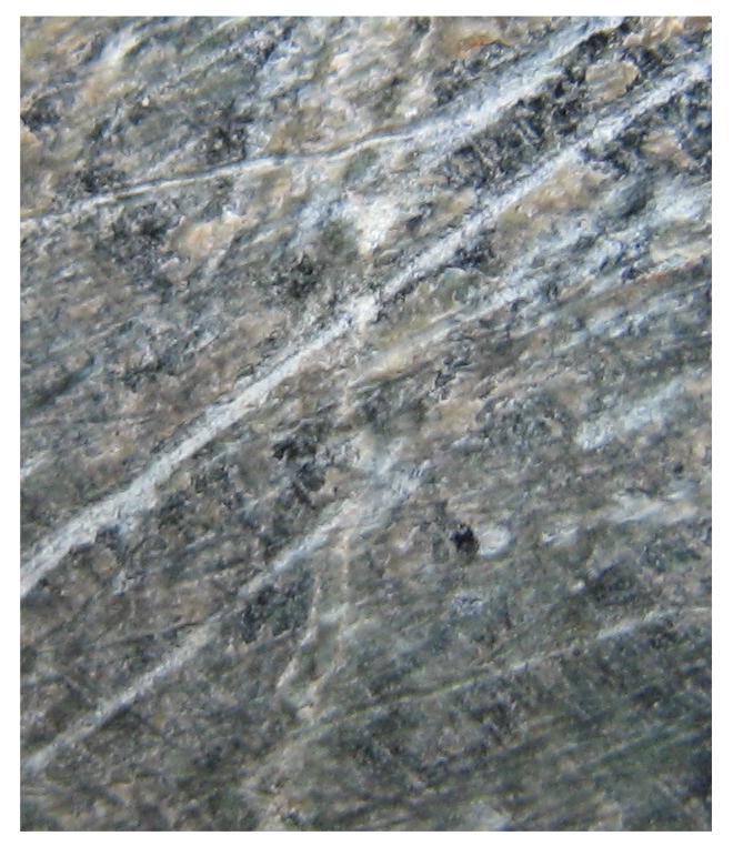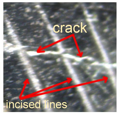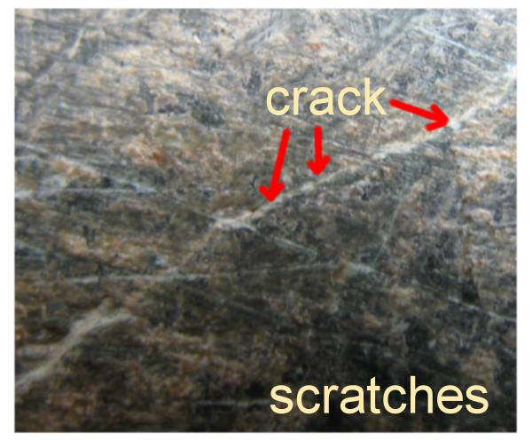 . Many of the scratches on it which are surface smoothing scratches and not the random tiny scratches of general wear and tear, run right over the crack.