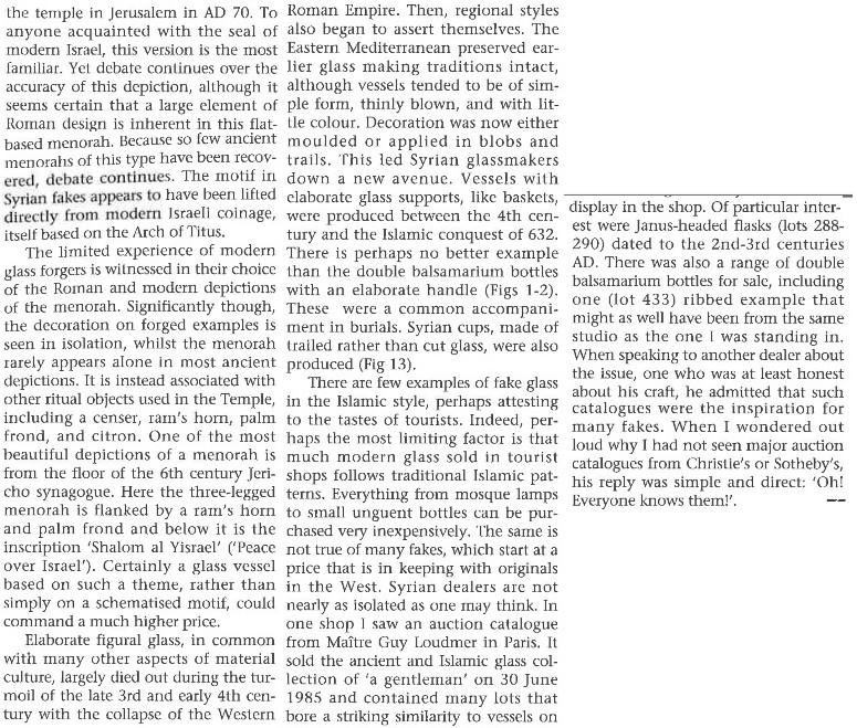 YOU ARE HERE:>> REAL or FAKE>Fake ancient glass page 7 : varieties - made in Syria, 2. Also by Murray Eiland from Minerva Magazine.