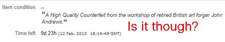 "A High Quality Counterfeit from the workshop of retired British art forger John Andrews." Fully Guaranteed to be from Andrews' studios and is sold with a Certificate of Authenticity signed by the artist.