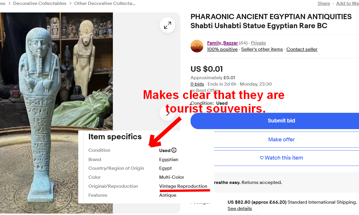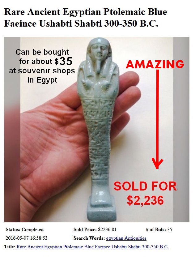 2024 Still selling well on eBay, very cheaply, as tourist souvenirs. But many sellers still buying them to re-sell as ancient.