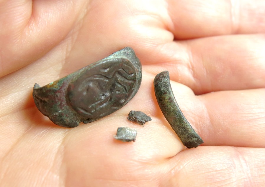 This a large and imposing Roman bronze ring with a large oval metal bezel chased boldly with a lion. It has a lovely deep red cuprite luster. The band had unfortunately been broken and repaired and then broke again. Maybe someone would like to try and repair it again. I can't just throw it away (!) so offering for rather little money. 3rd/4th century