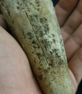 Described as follows..... How could anyone supposedly familiar with ancient artifacts from athe Ancient Near East believe that there is cuneiform writiing here?